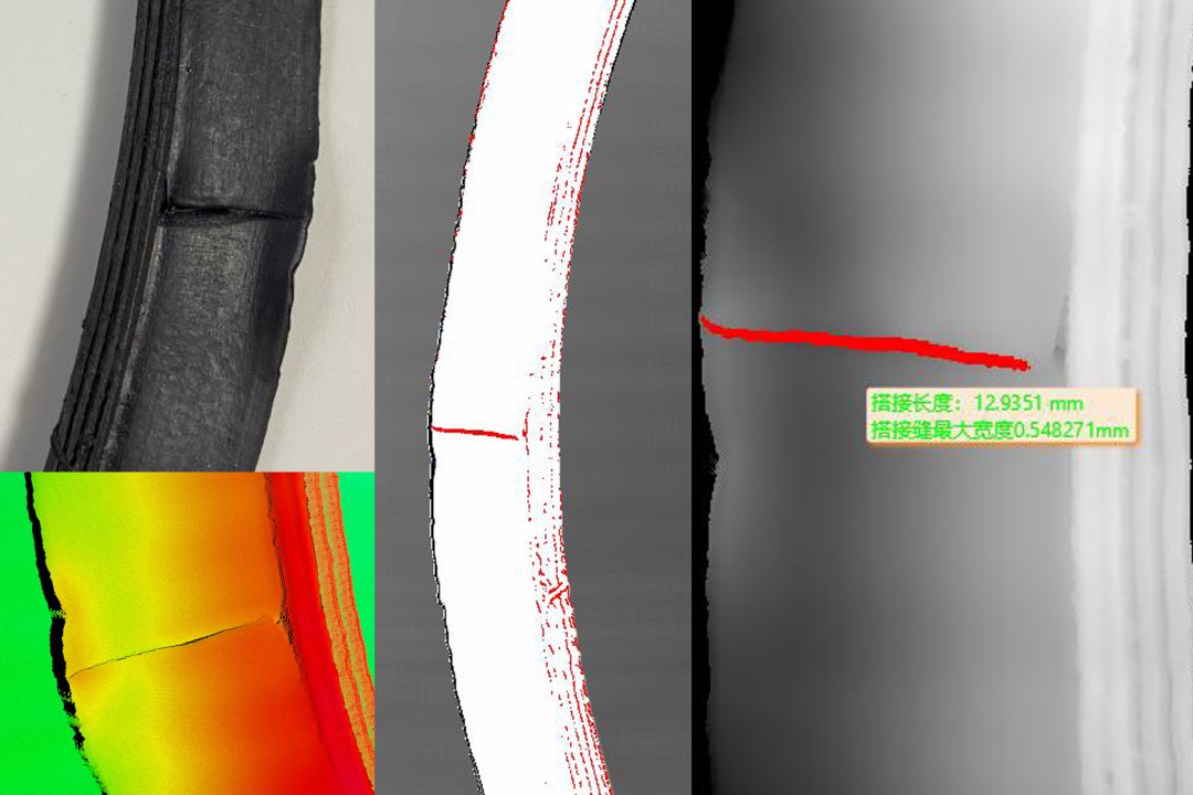 采用高速高精度的深视智能激光三维轮廓测量仪进行数据采集,可考虑对射激光三维轮廓测量仪进行震动规避,通过完整轮廓计算,分析卷折发生的具体原因,便于工作人员在设计和生产过程中采取相应措施规避,从而减少生产资源的浪费,降低轮胎残次品率,获取良好的经济效益。