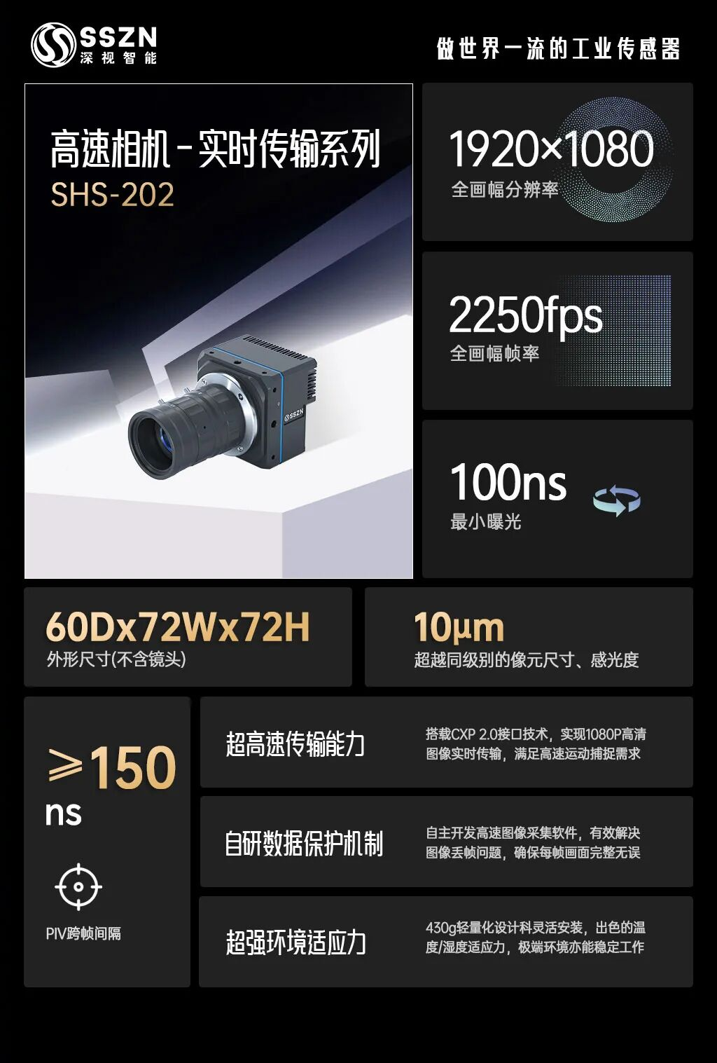 DeepVision’s new product — the SHS Real-Time Transmission Series High-Speed Camera is equipped with industry-leading CoaXPress 2.0 transmission technology, enabling real-time image transmission at 2250 fps at 1920×1080 resolution. It has become a highly efficient tool for scientific research, industrial inspection and other fields.