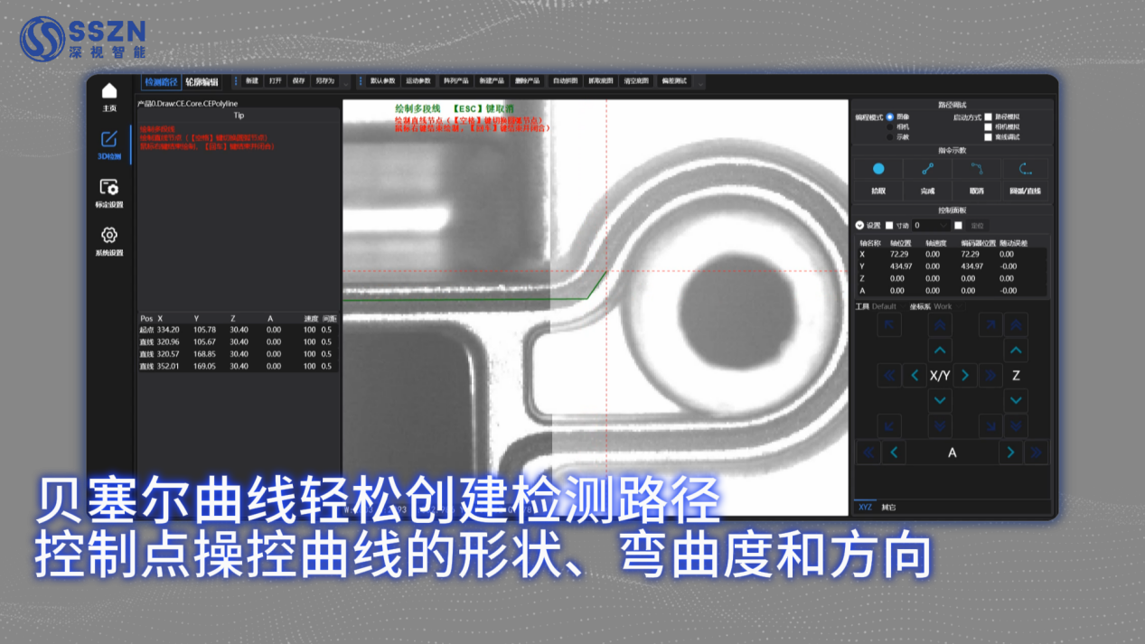 Using the Bezier curve tool, operators can easily draw 3D scanning paths fitting any irregular glue path by dragging control points on the software interface without programming.